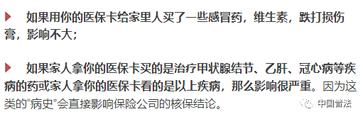 如果医保卡外借导致你留下了高血压、糖尿病等慢性疾病治疗记录,那么“自证清白”就很难了,核保结果可能会不理想。