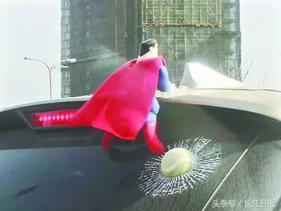 2月26日上午,市民周先生开车行驶在金银潭大道上,前方一辆车辆的后部车顶吸引了他的注意——车顶上“趴”着一个超人玩偶,玩偶旁还粘着半只网球。“那个超人玩偶穿着红色斗篷,车一开,斗篷迎风飘展,特别显眼。”在一处路口等红绿灯时,周先生拿起手机拍了几张照片。