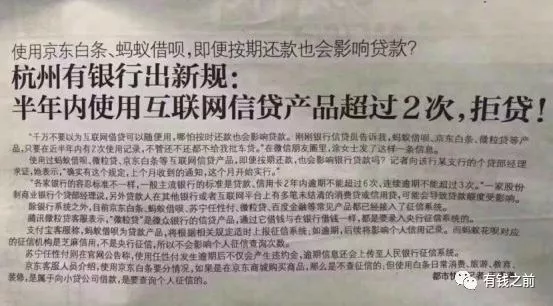 为什么你按时还款,贷款却不能审批?近期,杭州有银行出新规,半年内使用互联网信贷产品超过2次,拒贷!