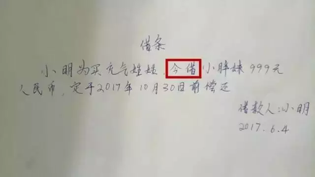 借条中“今借”与“今借到”,虽然只相差一个“到”字,但小明就是可以凭一个“到”字大做文章!小明可以说借条虽然是我写的,但只是表达了借钱意愿,999元并没有到手!这时,如果小胖妹拿不出其他的证据,小明就有可能赖账成功。